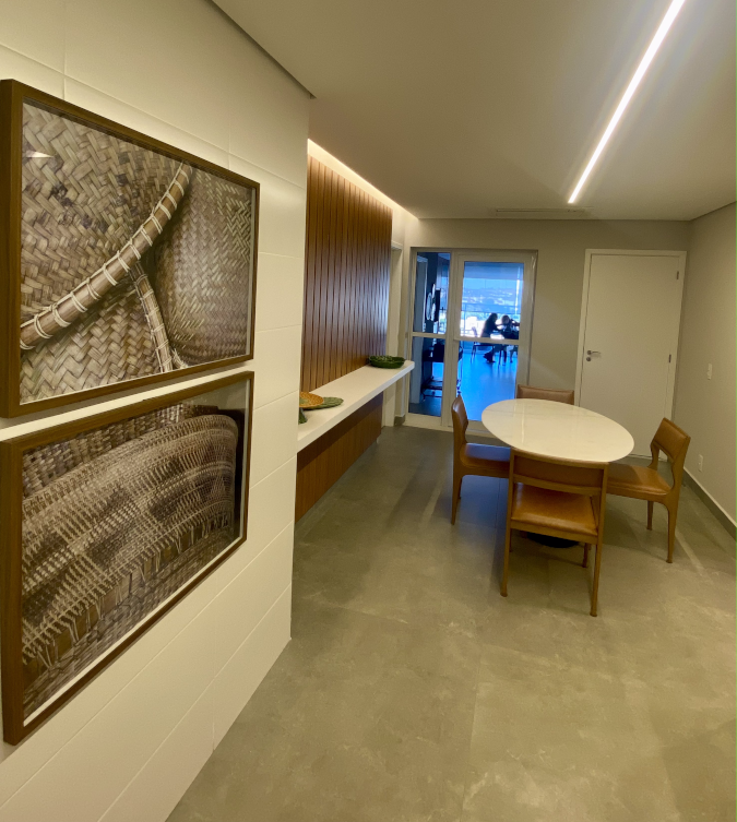 Integração dos Ambientes: Para proporcionar momentos de convivência familiar, integramos as salas com a área gourmet. Esta configuração permite um espaço fluido e harmonioso, perfeito para aproveitar todos juntos.